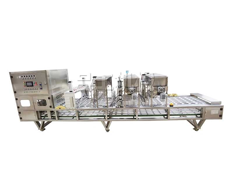 人工放杯,人工投料,自動放片蓋,自動封口,自動出杯。可根據要求增加減功能。
