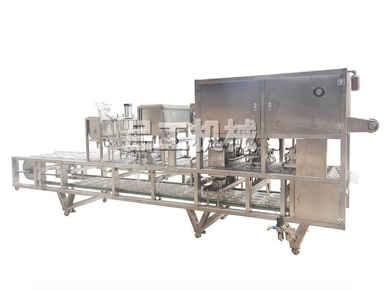 本機(jī)采用合理的機(jī)械傳動(dòng),功能齊全,灌裝、封口、切邊、制品推出,廢料收卷,印碼等自動(dòng)化工作,可節(jié)約人力,降低成本。本機(jī)有二次熱封裝置,料杯/碗/盒與封膜經(jīng)過前后二次熱封,封口牢固可靠。