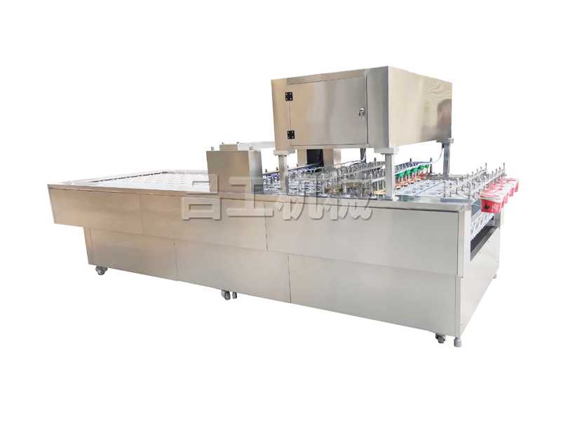 本機采用合理的機械傳動,功能齊全,灌裝、封口、切邊、制品推出,廢料收卷,印碼等自動化工作,可節約人力,降低成本。本機有二次熱封裝置,料杯/碗/盒與封膜經過前后二次熱封,封口牢固可靠。